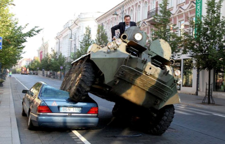 In an admitted publicity stunt, the mayor of a Lithuania town used his power to set an example of the type of high-class shenanigans he would no longer tolerate. To prove his point, he crushed a car using a tank that was parked in the bike lane of his town. More here.